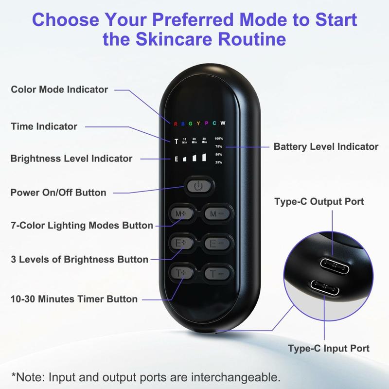 Denna LED-ljusterapimaske använder 7 riktade ljusfärger – rött, blått, grönt, gult, lila, cyan och vitt – för att behandla flera hudproblem såsom matthet, ojämn hudton, blemmor och tecken på åldrande. Varje våglängd är utformad för att ge en friskare hud genom en mild, icke-invasiv behandling.
