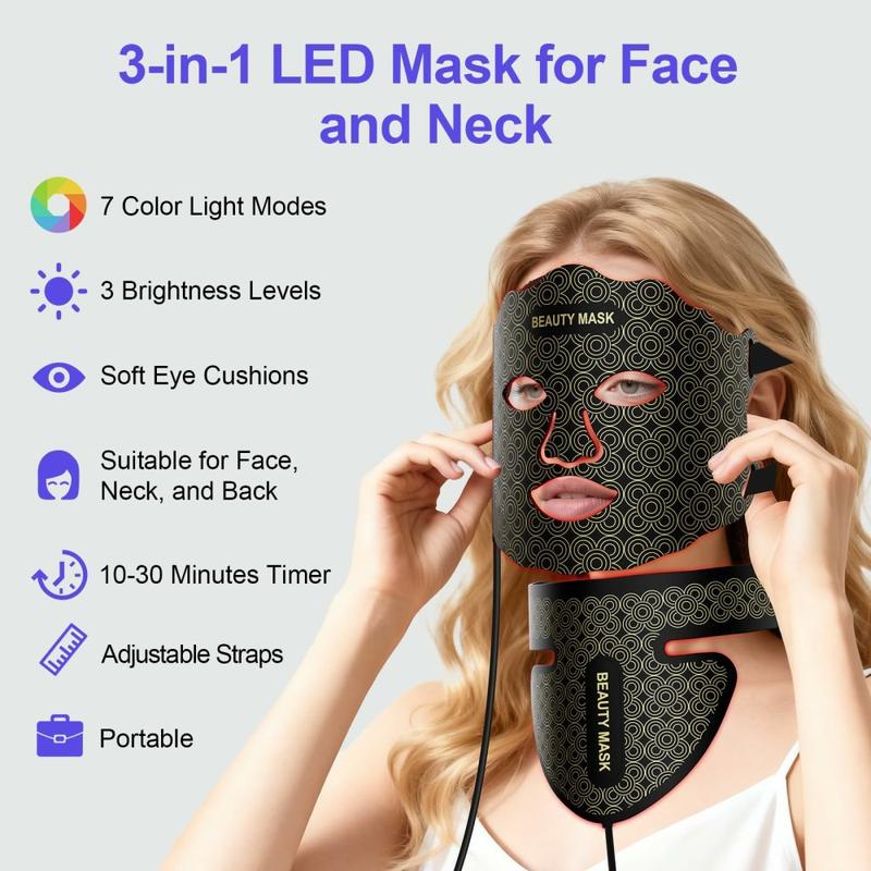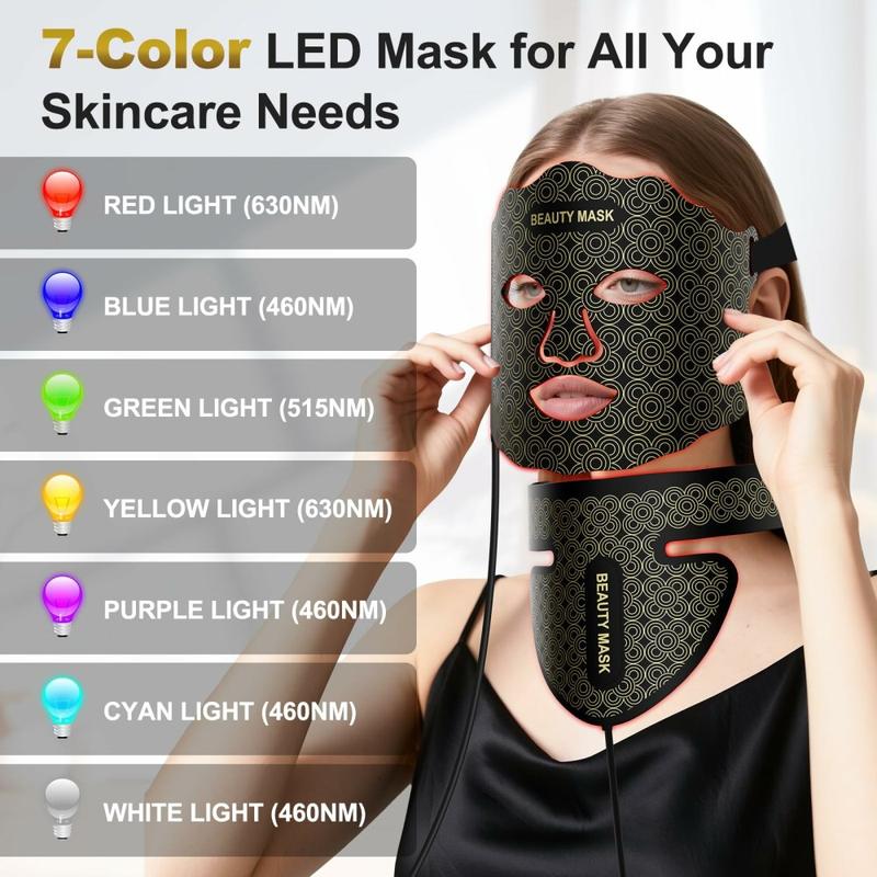 Denna 7-färgade LED-skönhetsmask ger professionell ljusbehandling hemma med justerbar intensitet, täckning av hela ansiktet och halsen samt användarvänliga säkerhetsfunktioner, vilket gör den till ett utmärkt tillskott till moderna hudvårdsrutiner.