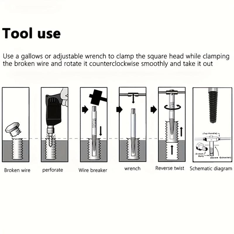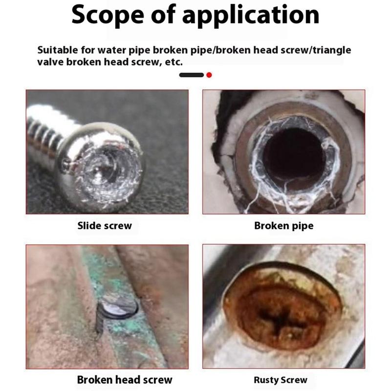 - Mångsidig användning - avlägsnar skadade skruvar, triangelventilbultar, knäckta dubbar och rostiga rörnipplar