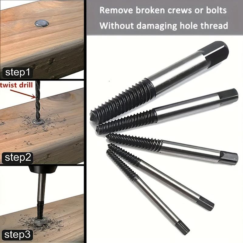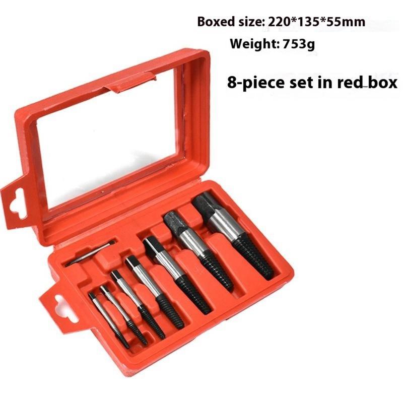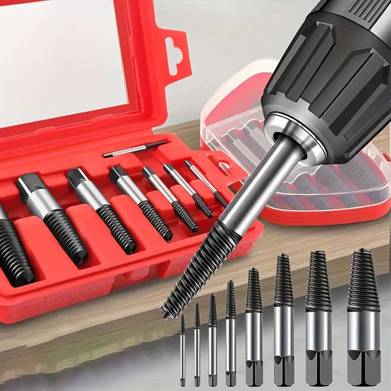 Frigör kärvande skruvar, knäckta bultar eller trasiga vattenrör utan att borra ut dem. Denna extraktorsats med åtta delar är tillverkad av värmebehandlat högkolstål för maximal vridhållfasthet och bett. Varje vänstergänga gräver sig djupare när du vrider och greppar säkert så att det skadade fästelementet backar ut rent - perfekt för VVS, bilreparationer och hushållsunderhåll.