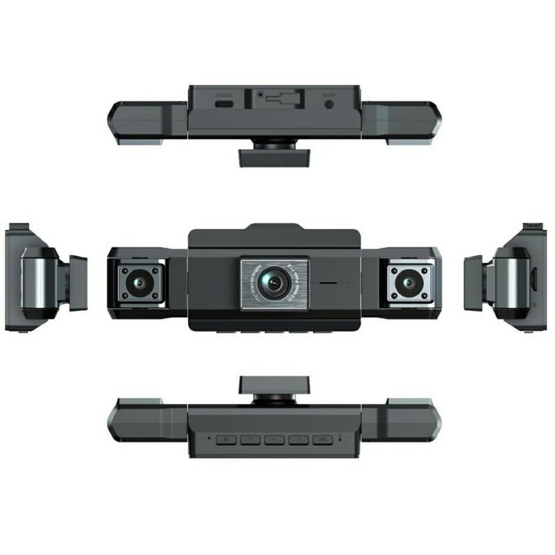 Den främre kameran har en 170° ultravidvinkellins som fångar mer av vägen framför dig. I kombination med Full HD 1080P-inspelning med 30 bilder per sekund ger bilkameran skarpa, detaljerade bilder även vid högre körhastigheter. Sidokamerorna kan roteras oberoende av varandra, vilket möjliggör flexibel justering för inspelning inomhus eller utomhus.