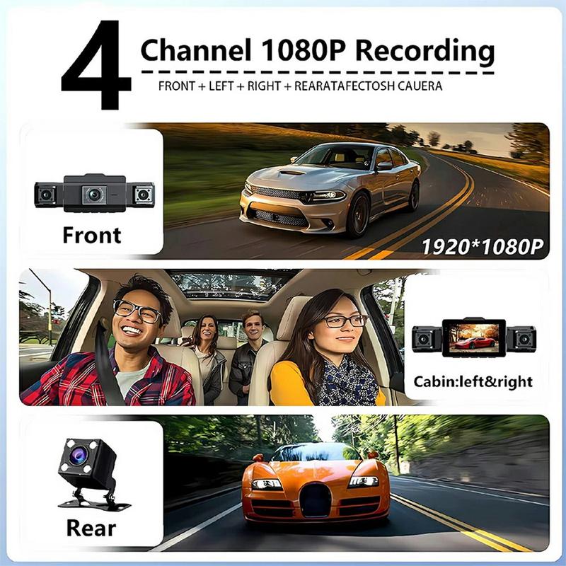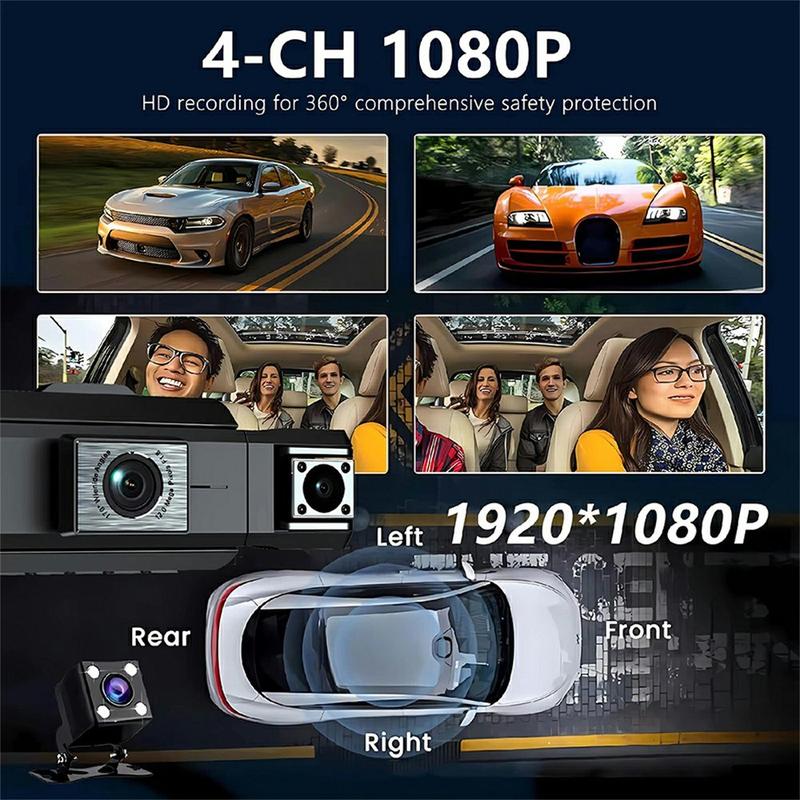 9728D WiFi dash cam är ett omfattande 4-kanals kamerasystem för fordon som är utformat för att fånga varje vinkel av din körning. Med kameror fram, vänster, höger och bak (tillval) ger det en bred täckning runt ditt fordon, vilket hjälper dig att dokumentera resor, incidenter och omgivningar med tydlighet och säkerhet.