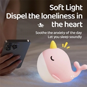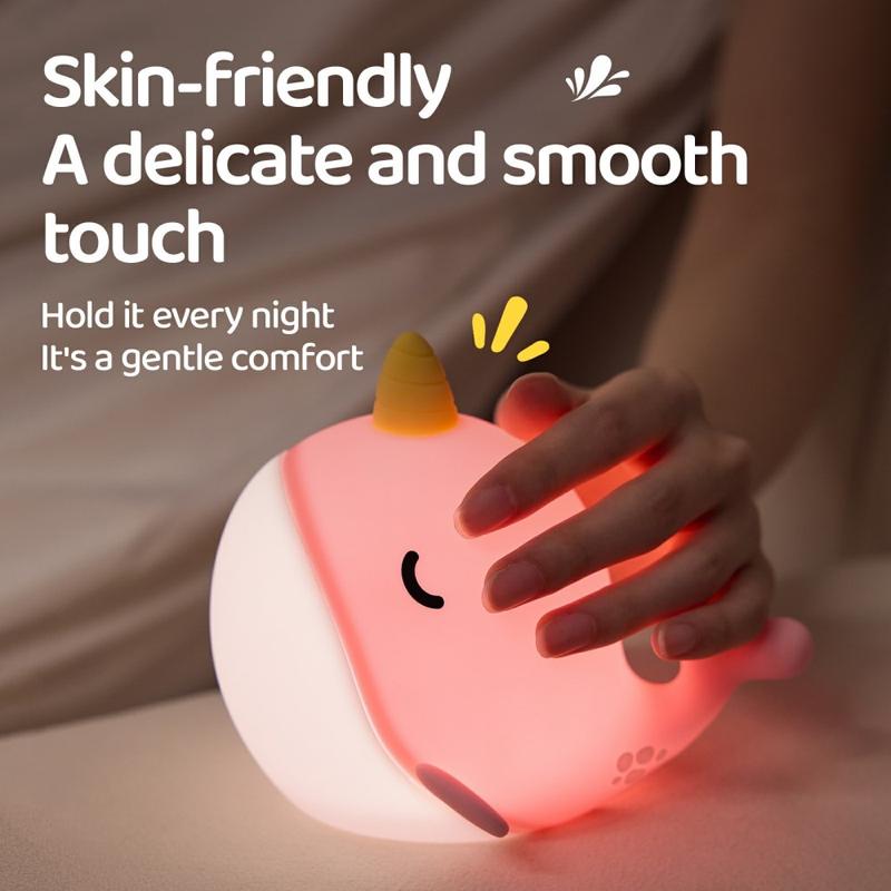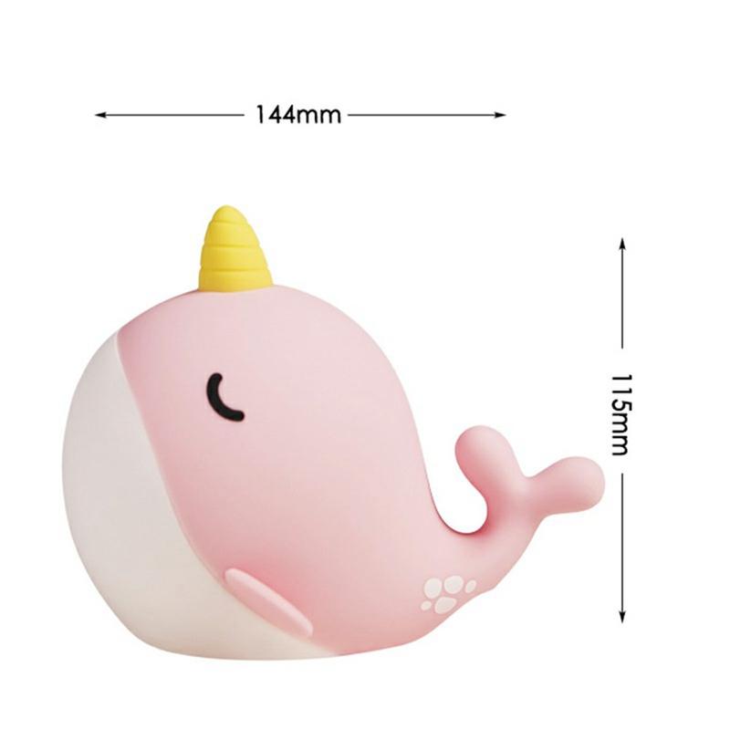 A044 Narwhal nattlampa i silikon - tryckkontroll, uppladdningsbar USB-C och mjukt sken