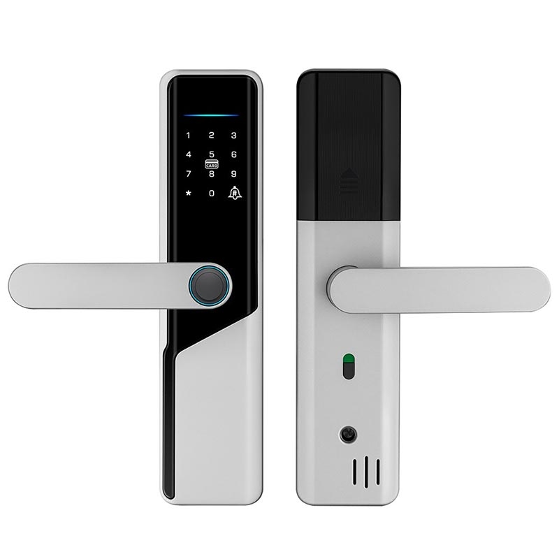 - Flera åtkomstmetoder: Lås upp din dörr med fingeravtrycksigenkänning, dynamiska lösenord, NFC-kort eller traditionella nycklar, vilket ger flexibilitet och säkerhet.
