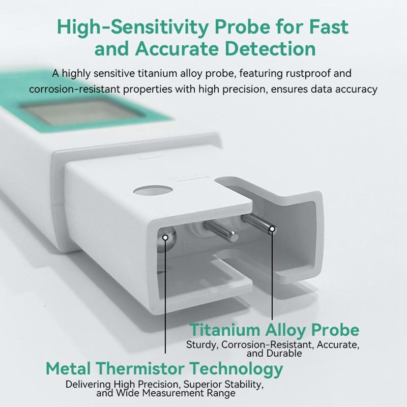 Vattenkvalitetstestaren A13 kombinerar högprecisionstestning, ett smart emoji-gränssnitt, hållbar titansond och bärbar design och är ett tillförlitligt verktyg för att säkerställa säkert dricksvatten - när som helst, var som helst.