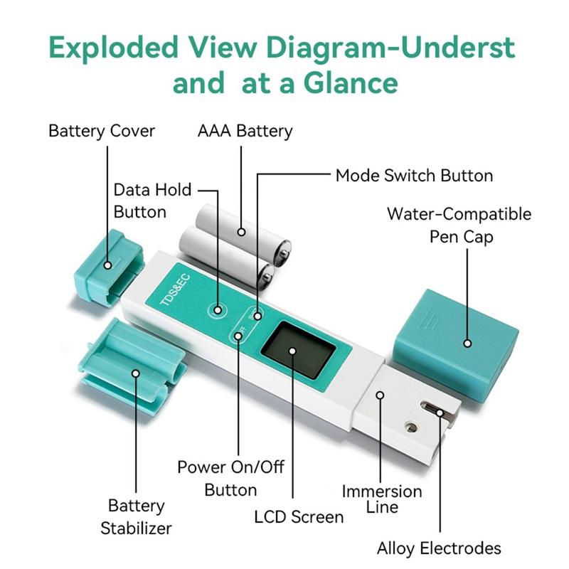 Testaren är kompakt, lätt och enkel att bära och passar bekvämt i fickan eller väskan. Perfekt för hemmabruk, resor, akvarier, hydroponik, filtreringstester och mycket mer.