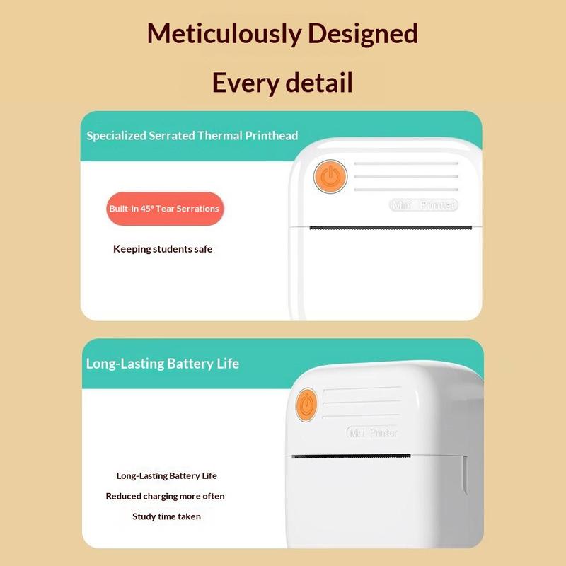Skriv ut etiketter, anteckningar och små foton när som helst med minitermoprinter A35. Denna kompakta, bläckfria skrivare är utformad för att underlätta vardagen, vilket gör den till ett praktiskt val för studenter, hemmet, dagboksskrivande, resor och snabba utskrifter när du är på språng.
