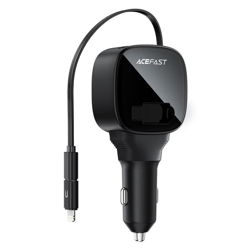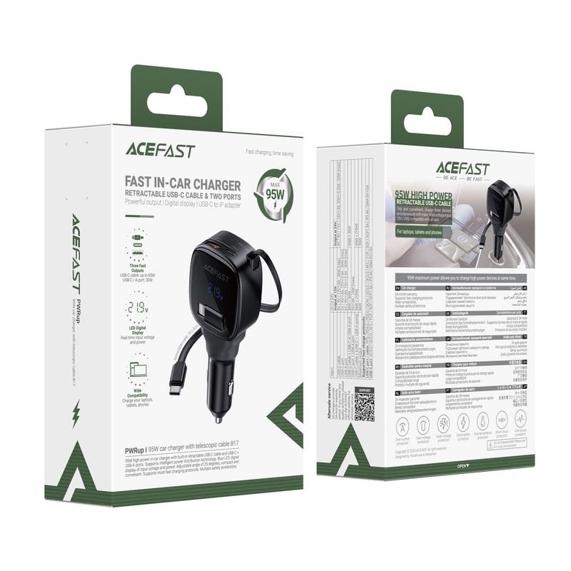 Acefast B17 95W snabbladdare för bil - USB-C/USB-A med LED-display och utdragbar kabel