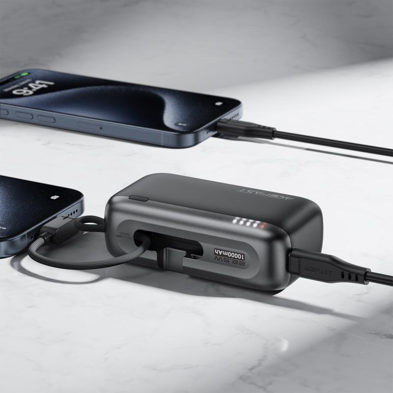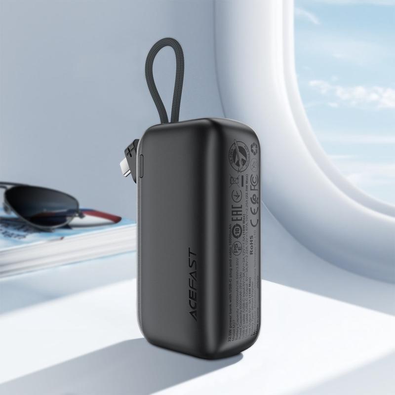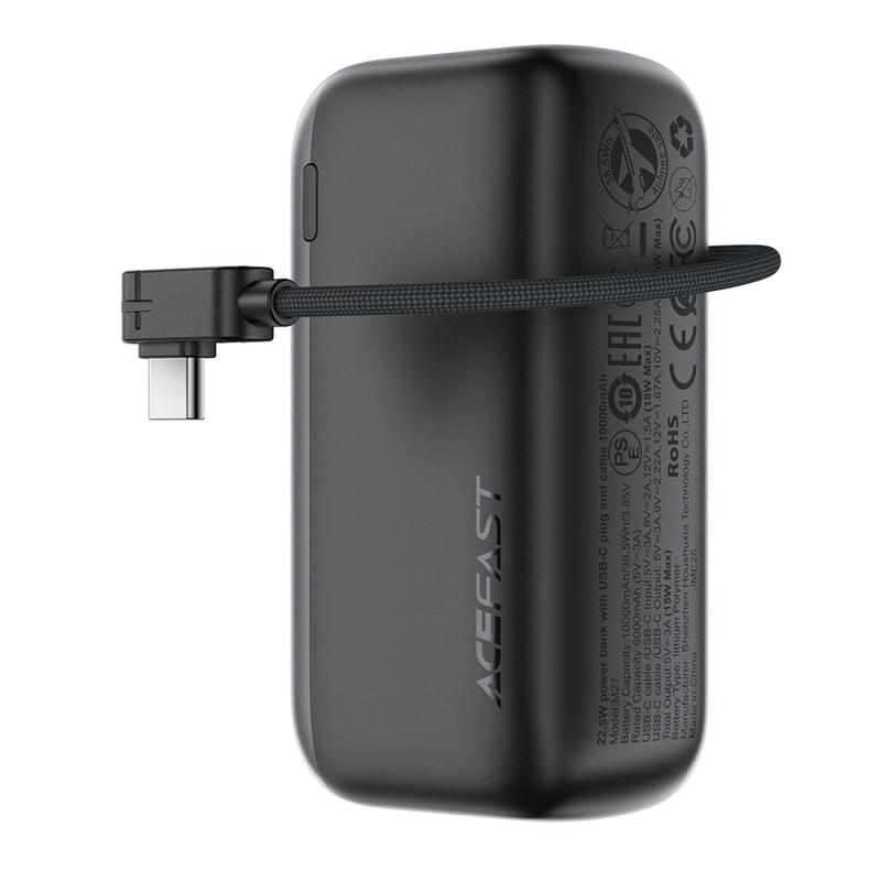 Acefast M27-10000 Mini 22.5W snabbladdande powerbank - USB-C PD + inbyggd kabel, LED-display