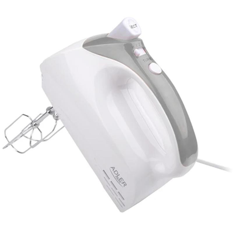 • En mycket praktisk 300 W mixer som är ett oumbärligt verktyg för alla som bakar kakor och tårtor. Det går att använda den i 5 olika hastigheter, beroende på vilken typ av mat du förbereder. Tack vare detta kan den användas både för att blanda mjöl med andra ingredienser och för att vispa äggvitor. Vid behov kan du använda TURBO-funktionen. Mixern är mycket praktisk och pålitlig och kan användas under en längre tid utan risk för att den går sönder.
