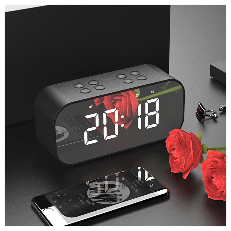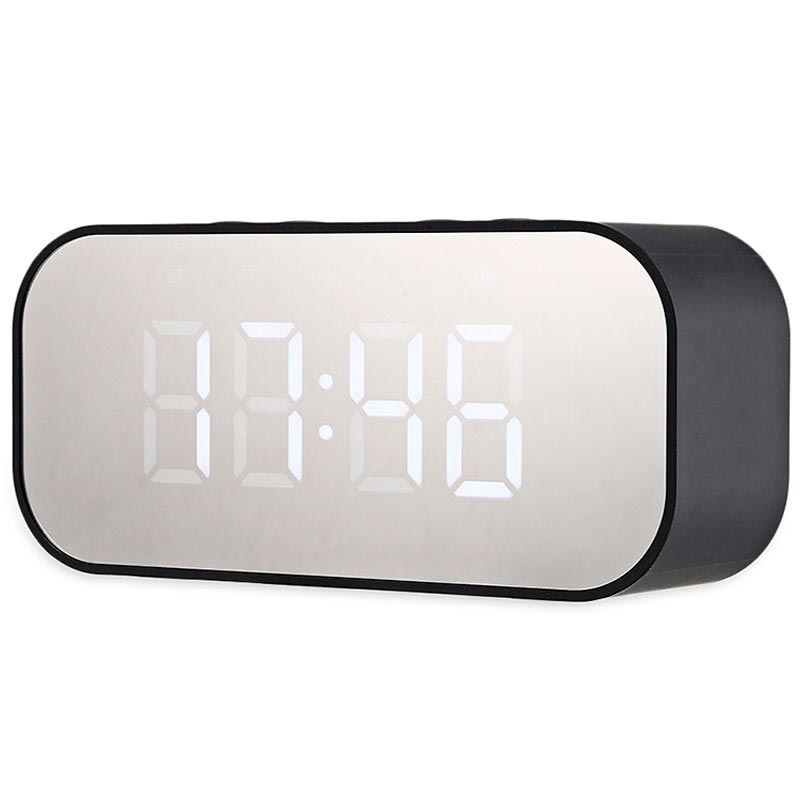 Bluetooth-högtalarfunktion av denna LED-alarmklocka passar nästan alla smartphones eller surfplattor med eller utan Bluetooth-anslutning, tack vare dess 3,5mm ljudingång. Det finns en till lösning för att streama musik och det är från ditt TF minneskort.
