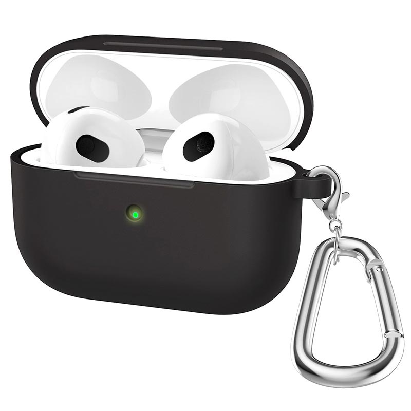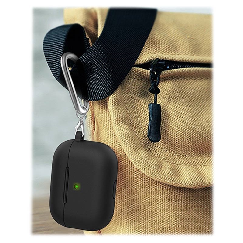 Sätt dina AirPods 3 på ett säkert ställe och håll dem skyddade mot dagliga skador och slitage med detta skal med modern design. Det är tillverkat av mjukt men solitt silikonmaterial och dina AirPods 3 passar perfekt i skalet. Det finns också en utskärning för laddningsporten, så du behöver inte ta av skalet för att kunna ladda hörlurarna. Skalet är utrustat med en karbinhake så du kan hänga det på din ryggsäck eller handväska och minskar risken för att du tappar hörlurarna i marken.