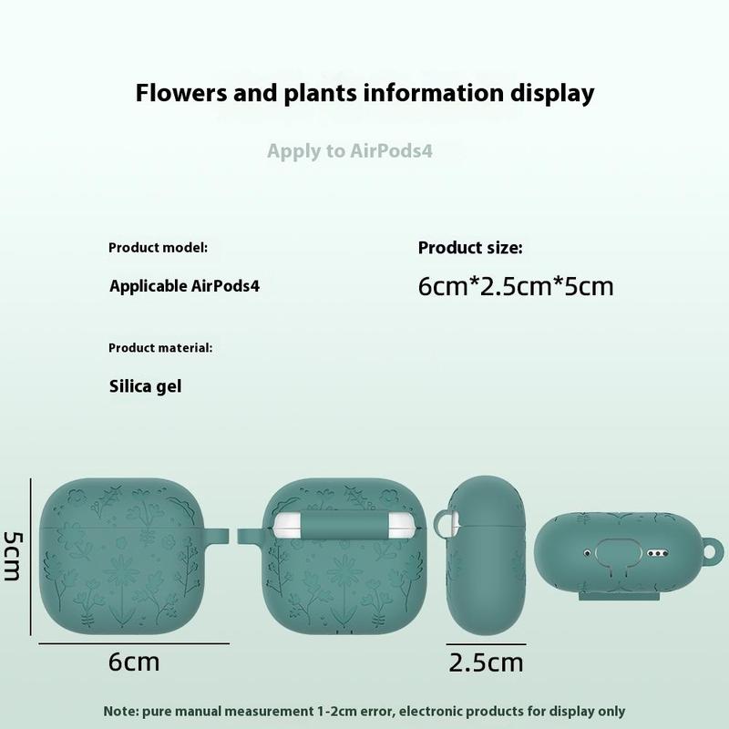 Silikonfodral med karbinhake och blommönster för AirPods 4