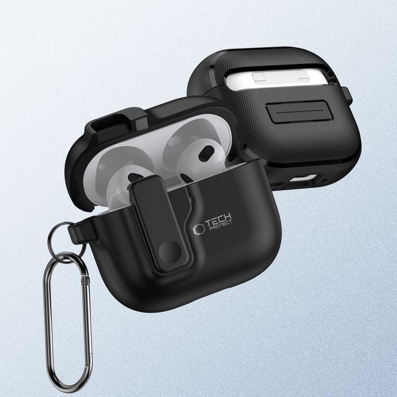 Tech-Protect Slim Hook Case är utformat för att erbjuda ett förstklassigt skydd för dina AirPods 4. Tillverkat av högkvalitativ polykarbonat (PC) ger detta fodral hållbarhet mot vardagligt slitage. Dess magnetiska stängning säkerställer att dina öronsnäckor sitter säkert och den tvådelade designen med exakta utskärningar ger full åtkomst till portar. Den medföljande karbinhaken gör att du enkelt kan fästa fodralet på väskor, ryggsäckar eller nycklar för bärbarhet.