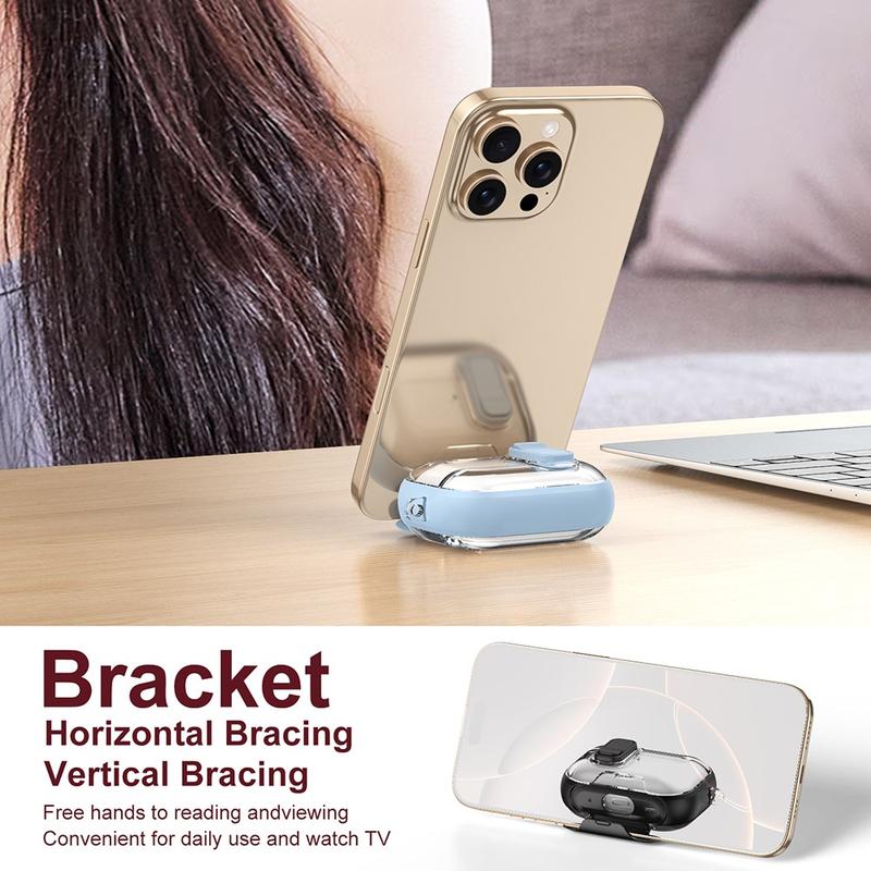 Med ett inbyggt vikbart stativ på undersidan kan du ställa dina AirPods Pro 2 upprätt för handsfree-användning. Perfekt för att titta på videor, videosamtal eller för att hålla öronsnäckorna prydligt placerade på skrivbordet.