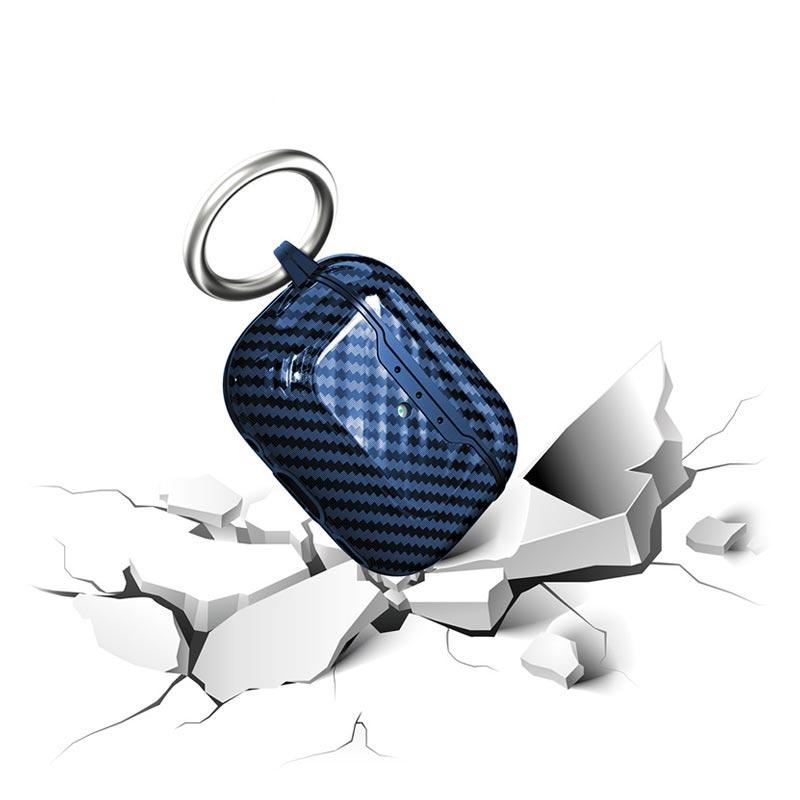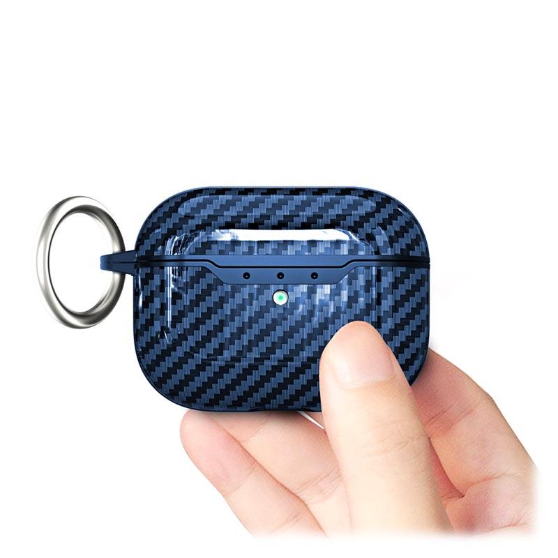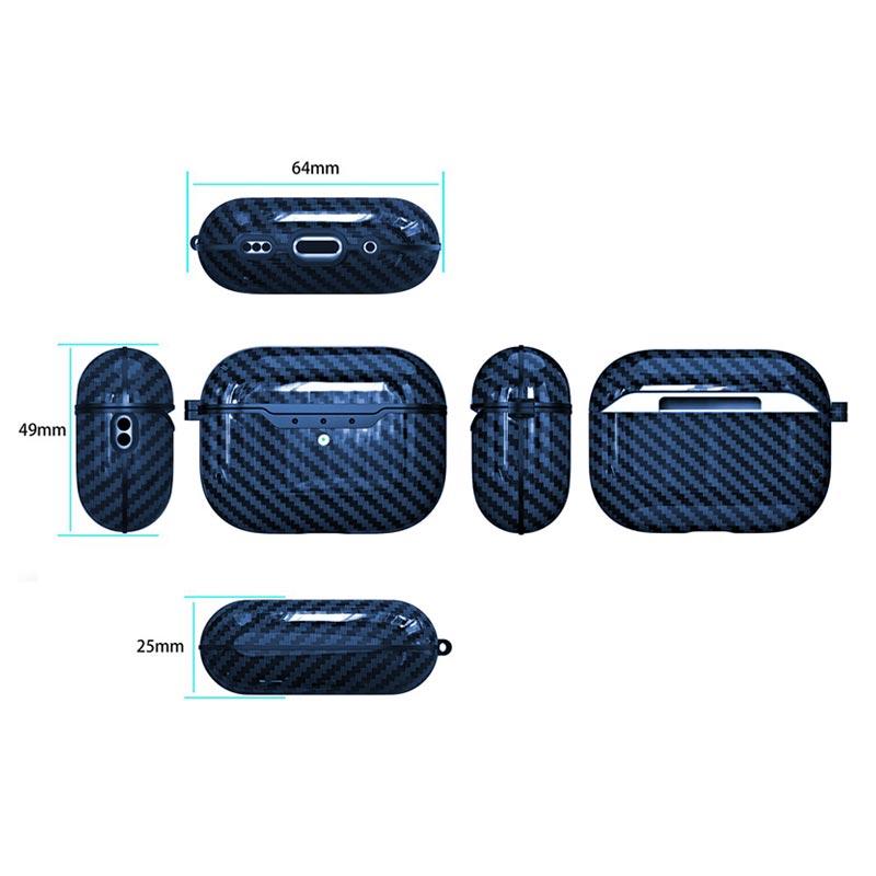 AirPods Pro 2 TPU-skal med Karbinhake - Kolfiber - Blå