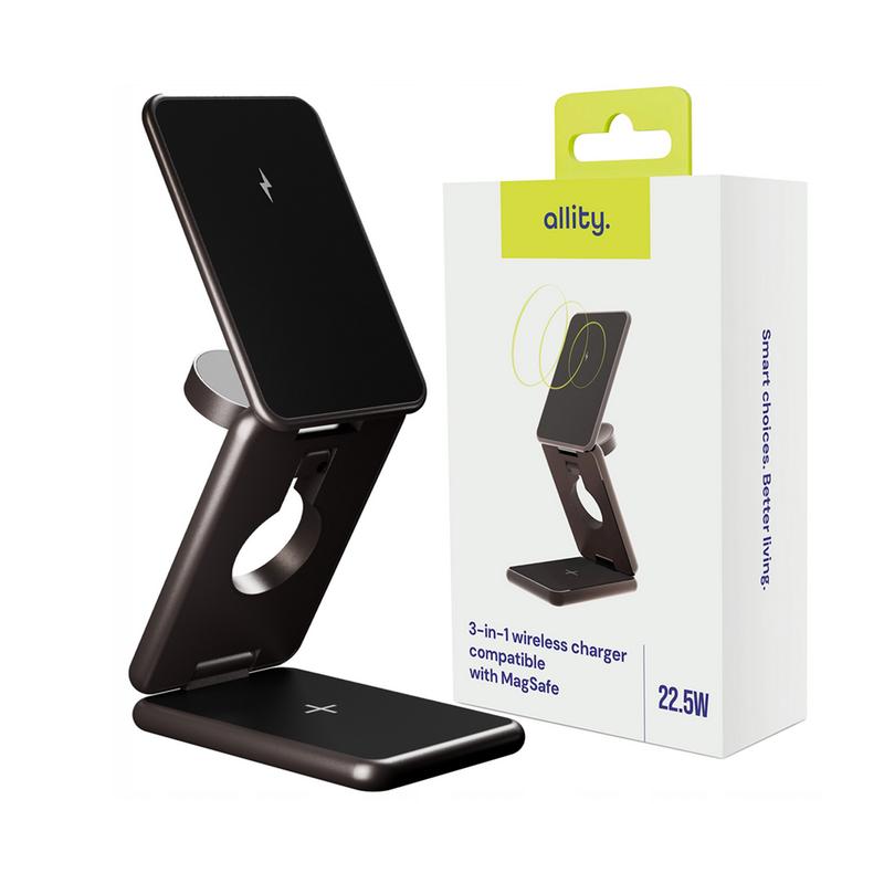 Allity AWC-230-225WMS 3-i-1 MagSafe trådlös laddare 22.5W - vikbar docka för iPhone, Apple Watch och AirPods