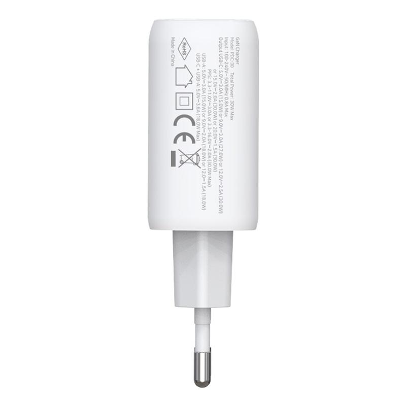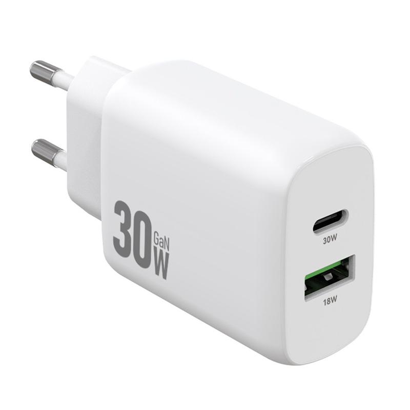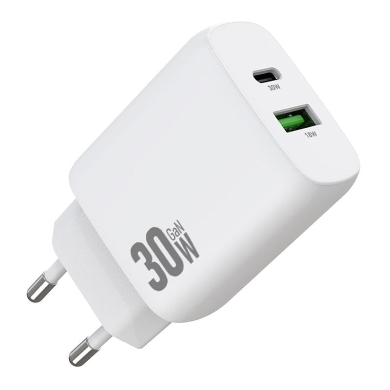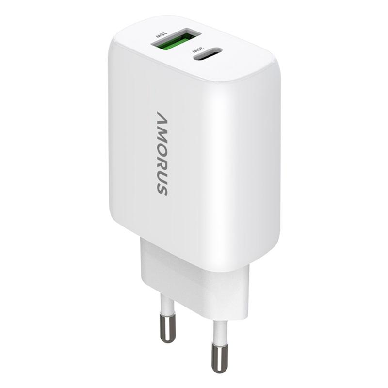 AMORUS 30W GaN snabbladdare för vägg - USB-C PD och USB-A QC väggadapter, EU-kontakt
