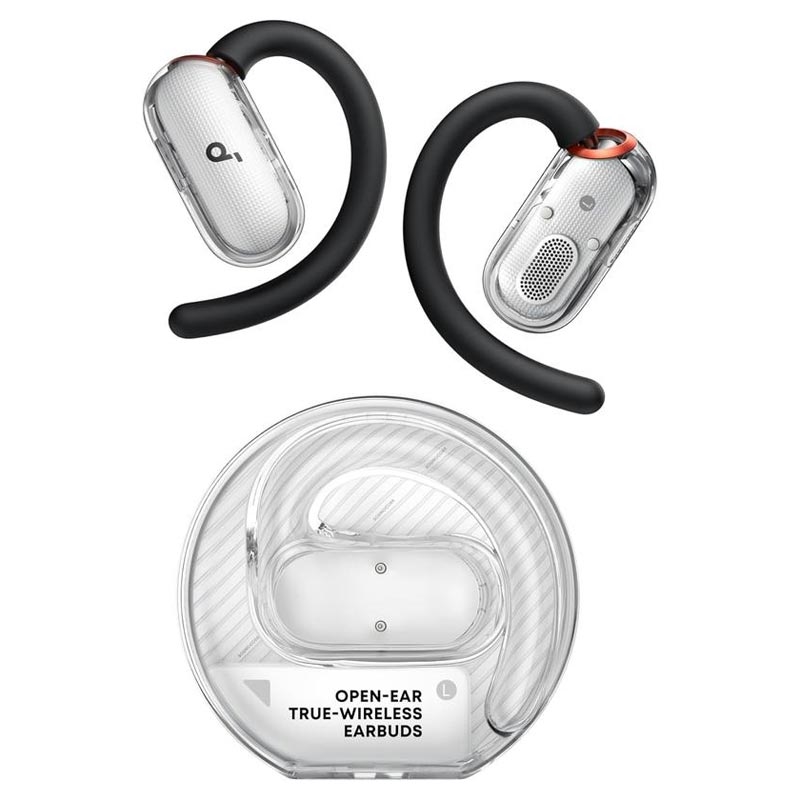 Soundcore V40i open-ear-hörlurarna är utformade för en aktiv livsstil där komfort, medvetenhet och ljudkvalitet är viktiga faktorer. Med en innovativ open-ear-design och justerbara öronkrokar sitter de bekvämt utanför hörselgången, så att du kan njuta av musik samtidigt som du är medveten om din omgivning. Det eleganta, genomskinliga laddningsfodralet utan lock ger en modern touch och möjliggör snabb och enkel åtkomst var du än befinner dig.