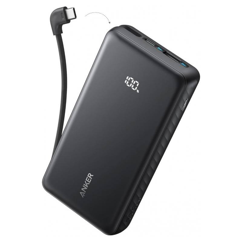 Anker Zolo 10000mAh powerbank - bärbar laddare på 22.5W med inbyggd USB-C-kabel, snabbladdning med QC och PD