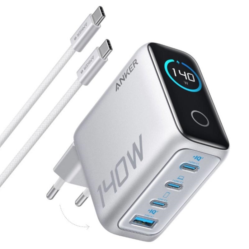 Få kraft i skrivbordsklass från en tegelsten i handflatestorlek. Anker Zolo 140W-laddaren är byggd med tredje generationens GaN-transistorer och skickar upp till 140 watt genom tre USB-C Power Delivery/PPS-portar och en USB-A snabbladdningsport - tillräckligt för att återuppliva en 16-tums bärbar dator, telefon, surfplatta och öronsnäckor samtidigt. En beröringskänslig display visar watt, portstatus och laddarens temperatur i realtid, medan vikbara tappar och en halkskyddad bas håller adaptern stabil i alla uttag hemma och utomlands. Åttafaldigt skydd skyddar anslutna enheter från värme, överspänningar och kortslutningar, vilket gör detta till den enda laddaren du kan lita på för allt från en iPhone 15 Pro Max till en DJI-drönare.