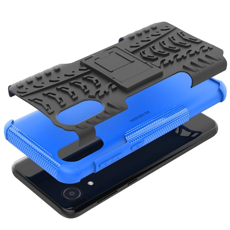 Detta är ett stiligt, halkfritt hybridskal med stativfunktion till Samsung Galaxy A03 Core. Den halkfria designen motverkar att din Samsung Galaxy A03 Core glider ur händerna på dig, och hörnen är förstärka för att ge ett extra bra skydd till din Samsung Galaxy mot fallskador. Det är tillverkat av plast och TPU-material och skalet är solitt och hållbart.