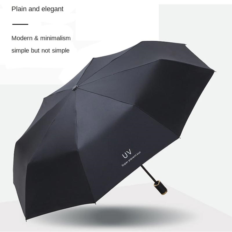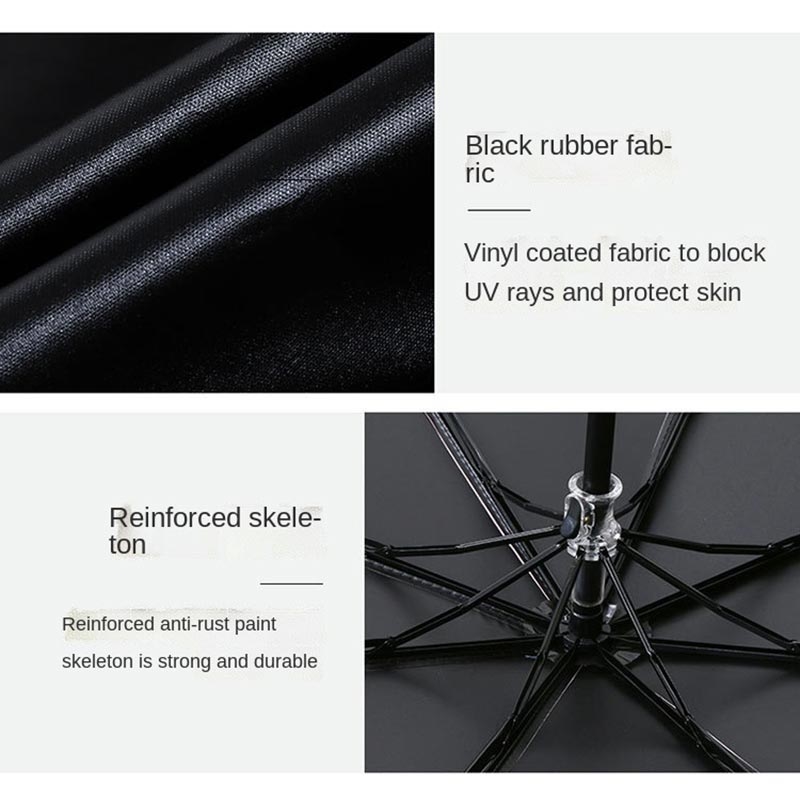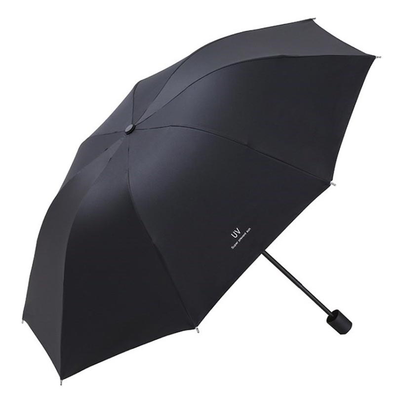 Anti-UV kompakt hopfällbart paraply - bärbart reseparaply för sol och regn med 8 ribbor, trefaldig design, förvaringsväska