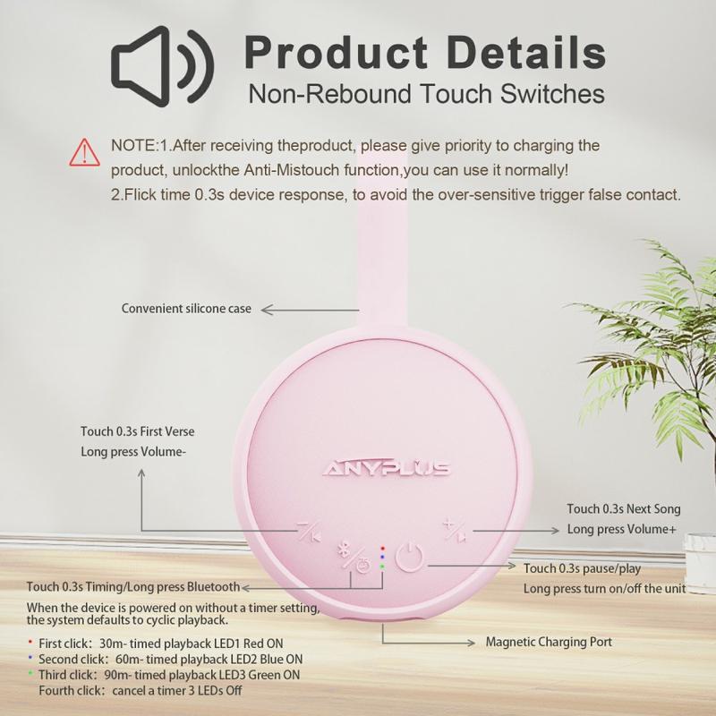 AnyPlus bärbar vit brusmaskin för babysömn / sömnhjälp ljudmaskin med Bluetooth-högtalare