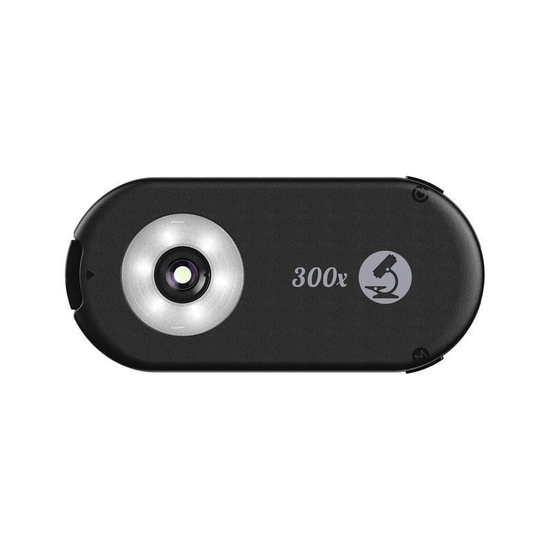 Apexel APL-MS300 300X mikroskoplins för smartphone - förstoringsglas med clips och trefärgad LED-belysning och UV-detektering