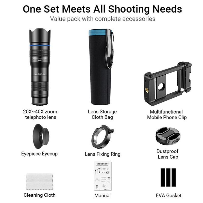 APEXEL HD metall 20-40x zoom teleskop teleobjektiv monokulär telefonkameraobjektiv för iPhone Samsung Huawei