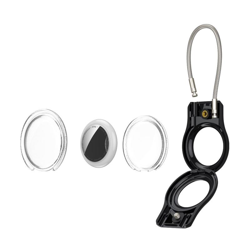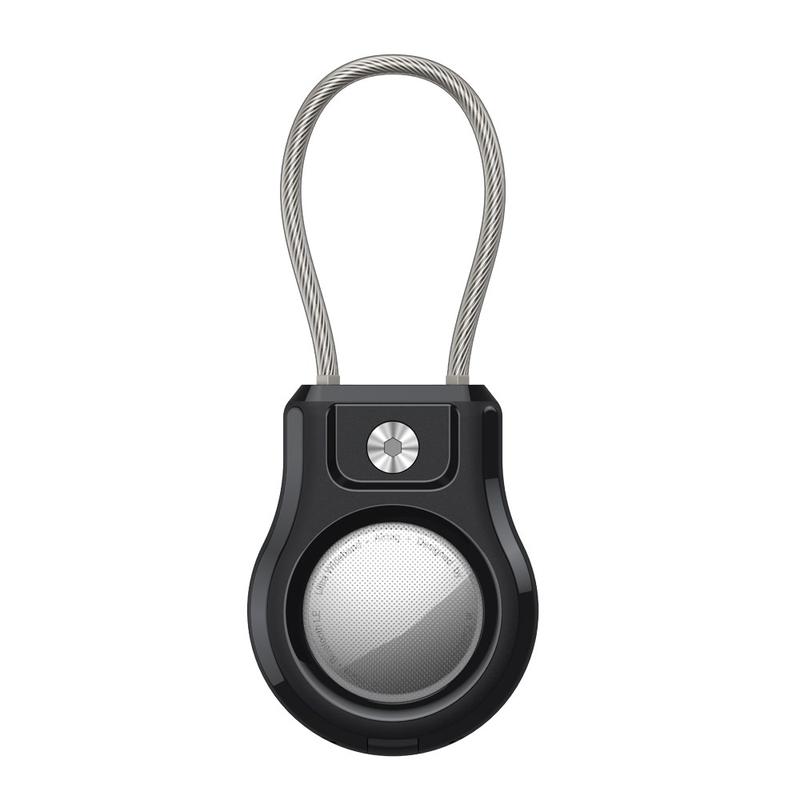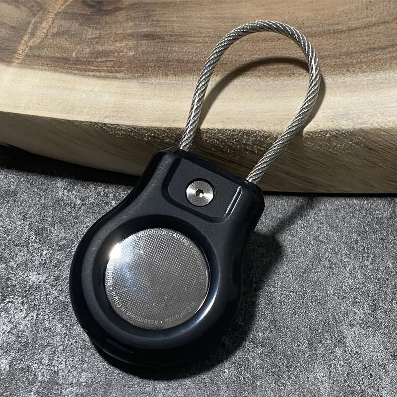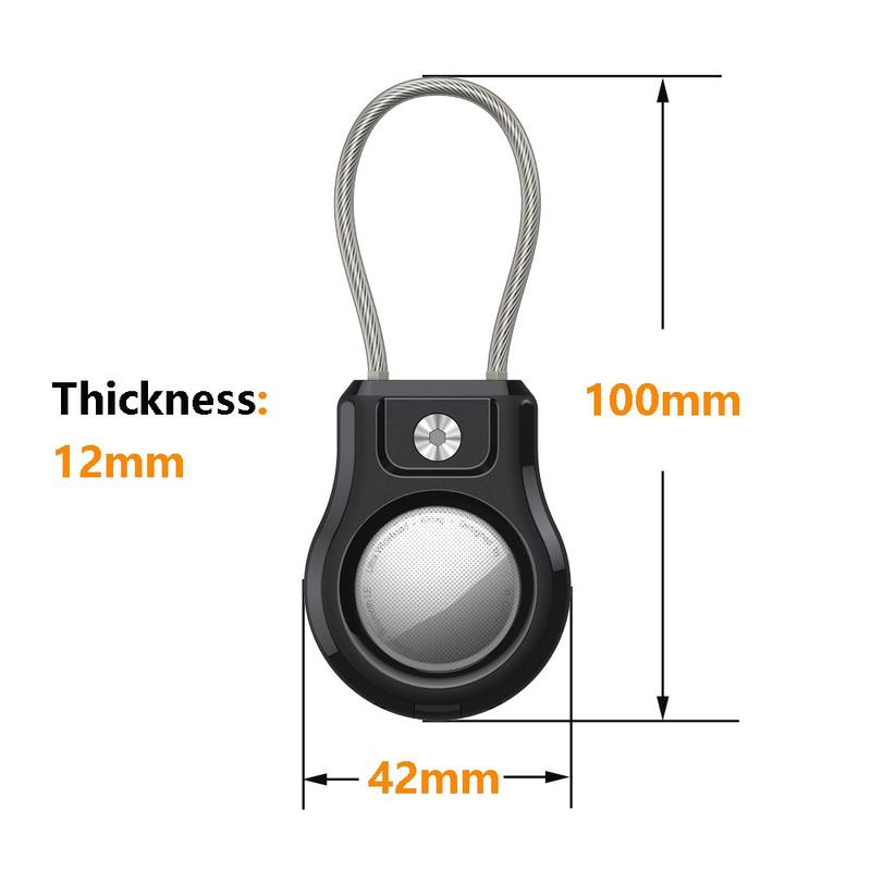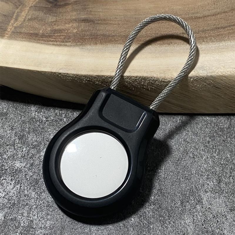 - Säkert stålband - Inbyggd rostfri stålkabel gör det möjligt att fästa den på nycklar, ryggsäckar, djurhalsband, bagage eller cyklar, så att din Apple AirTag/AirTag 2 sitter säkert på plats.