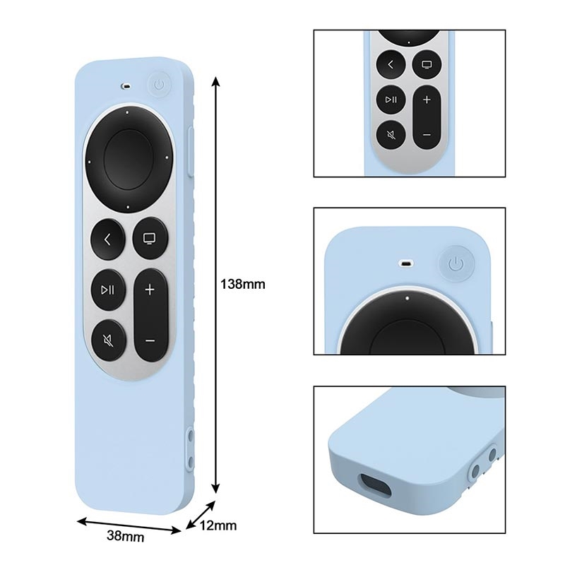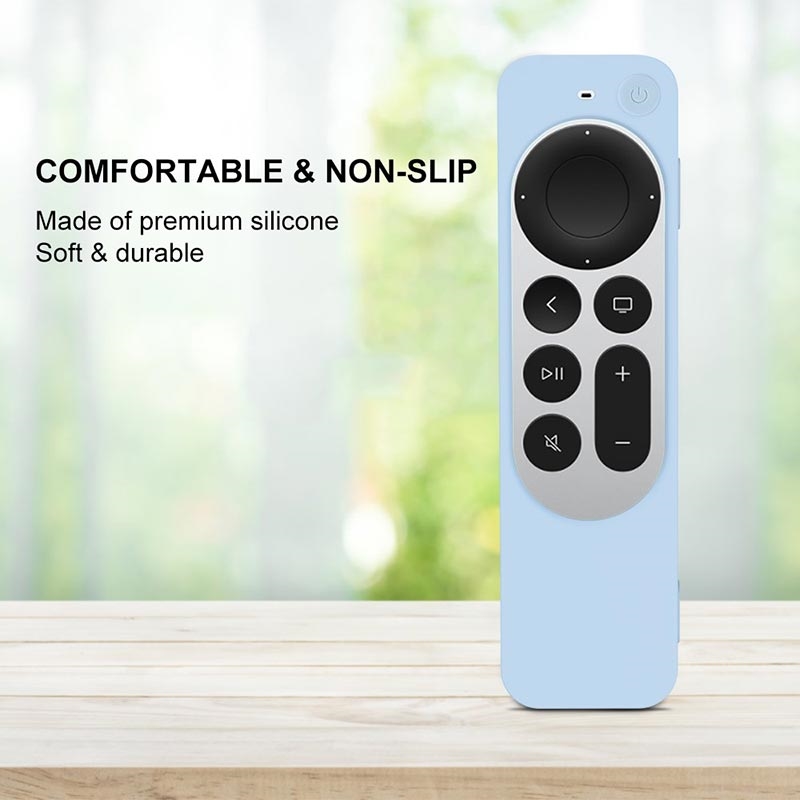 Den halkskyddade, stötsäkra designen omsluter Siri-fjärrkontrollen säkert från alla vinklar, vilket hjälper till att förhindra oavsiktliga fall eller ytskador. Utskärningarna är exakt placerade för den pekaktiverade klickplattan, portar och knappar, vilket säkerställer full funktionalitet utan hinder.
