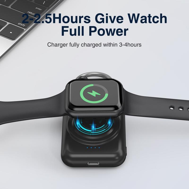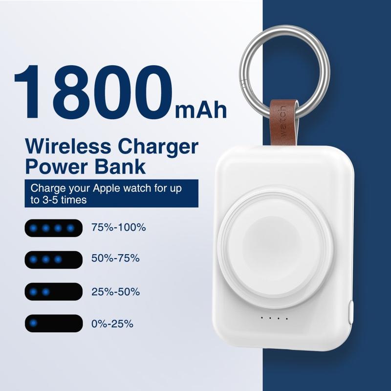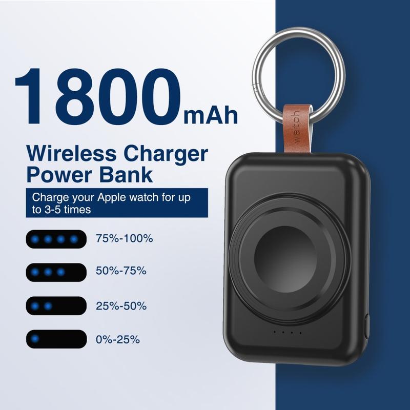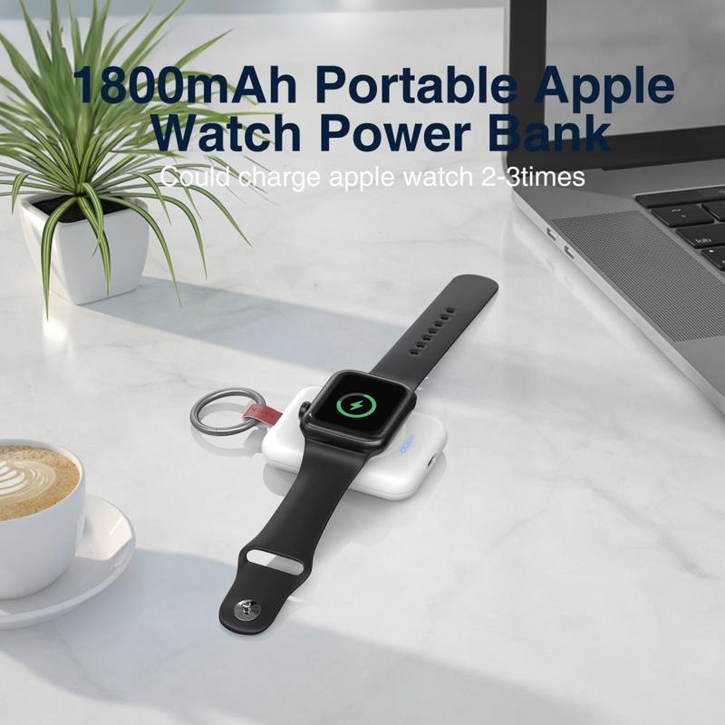 - Batteri med hög kapacitet: Utrustad med ett 1800mAh-batteri, vilket ger gott om kraft för att ladda din Apple Watch flera gånger.