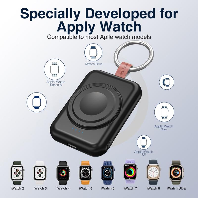 A-04 Bärbar trådlös miniladdare för Apple Watch - 1800mAh kraftbank med ringspänne