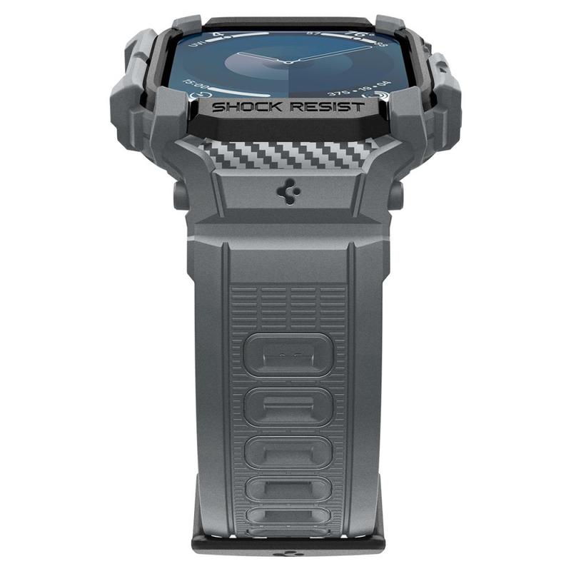 Sätt på detta nya skydd från Spigen på din Apple Watch Series 11/10 och ge dig ut på dina dagliga äventyr väl förberedd. Rugged Armor Pro skal med armband är tillverkat av stötabsorberande TPU-material med kolfiberdetaljer och en modern robust design som passar perfekt för alla tillfällen och väderförhållanden. Det justerbara och flexibla armbandet är skonsamt mot huden medan det perfekt formade TPU-skalet ger enkel åtkomst till alla funktioner på din Apple Watch Series 11/10.