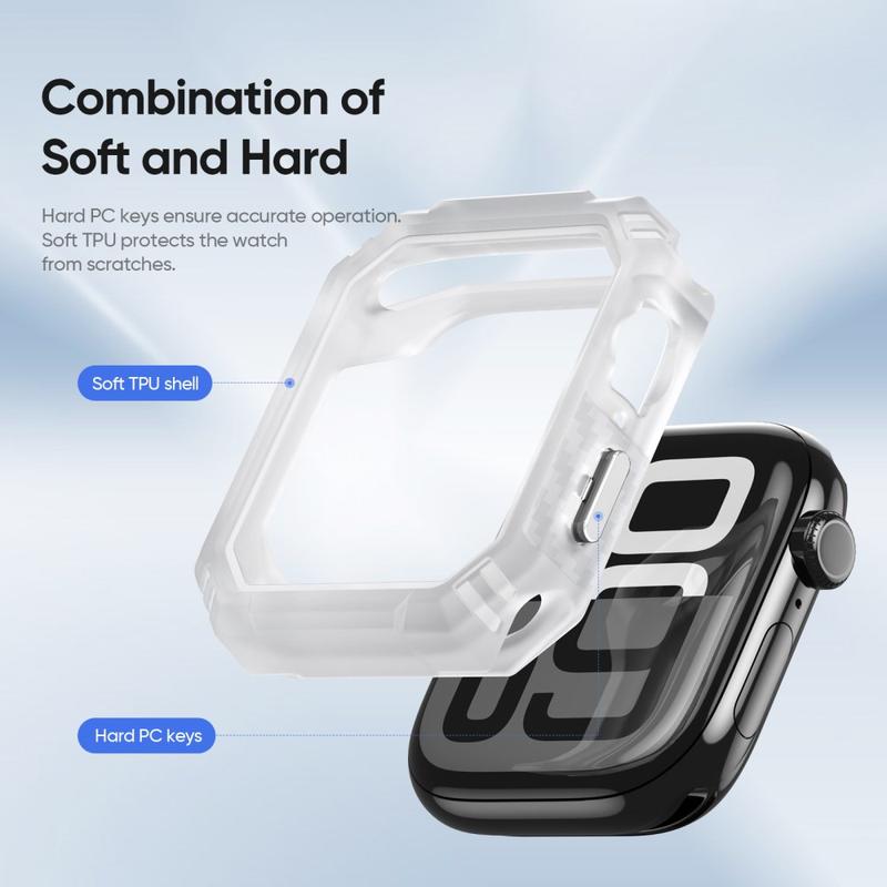 Dux Ducis Damo Series Watch Case för Apple Watch Series 11/10 kombinerar stil med skydd och ser till att din smartklocka förblir säker och repfri under dagliga aktiviteter. Detta PC+TPU-skal är utformat för att absorbera stötar och förhindra skador från oavsiktliga fall samtidigt som det ger enkel åtkomst till knappar och sensorer.