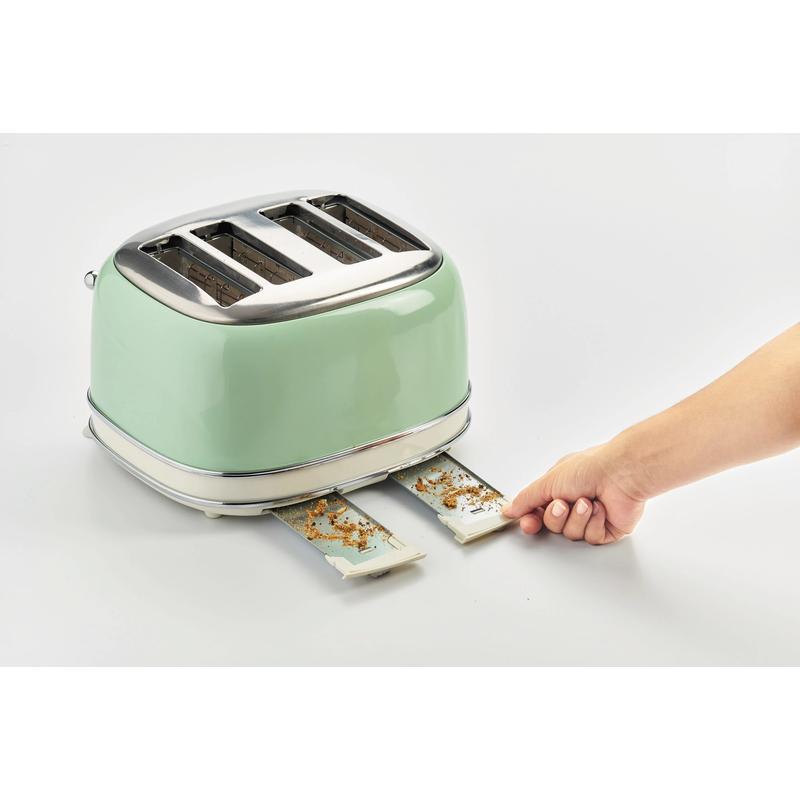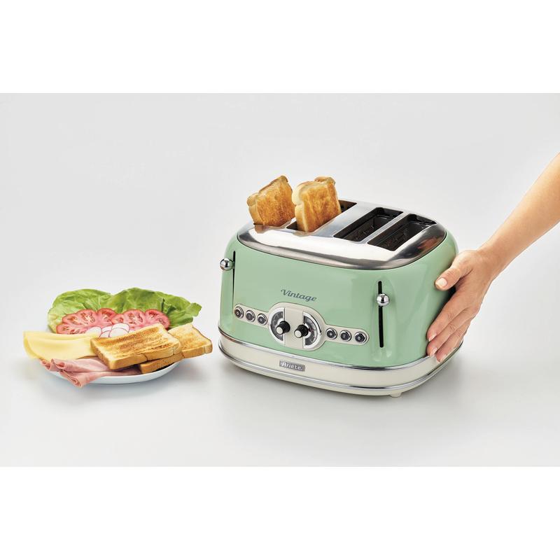 Ariete 156 Vintage Electric Toaster är ett snyggt tillskott till alla kök och har en retrodesign med pastellfärger och en metallkropp. Den här brödrosten har fyra platser med oberoende 2x2-kontroller, så att du kan rosta, värma eller tina skivor till perfektion med sex brynningsnivåer. Den automatiska utmatningsfunktionen garanterar säker och enkel hämtning av din toast, medan den löstagbara smulbrickan och sladdutrymmet gör rengöring och förvaring enkel. Dess kallväggsdesign ger säkerhet utöver dess funktionalitet.