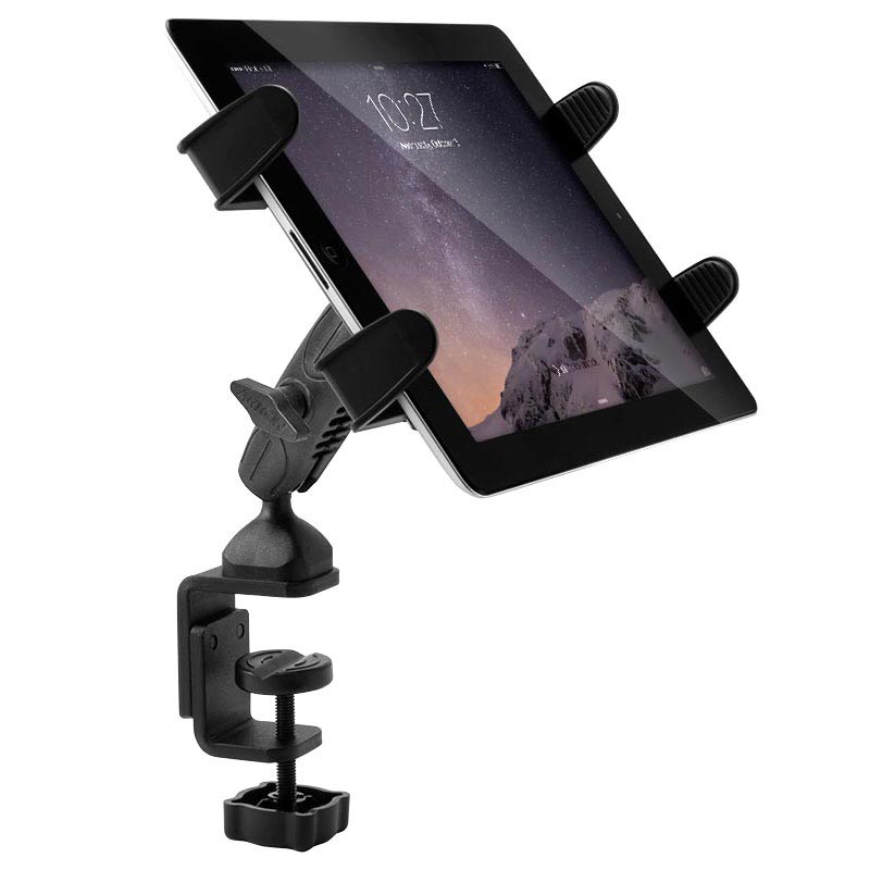 Denna universella skrivbordshållare från Arkon Robust Mount series låter dig fästa din surfplatta till tripods, skrivbord, kärror eller andra bordsliknande ytor. Den har en inbyggd C-klämma som ger stabilt grepp på ytor som är 6mm till 60mm breda. Det justerbara fästet passar surfplattor med bredd från 164mm - 221mm.
