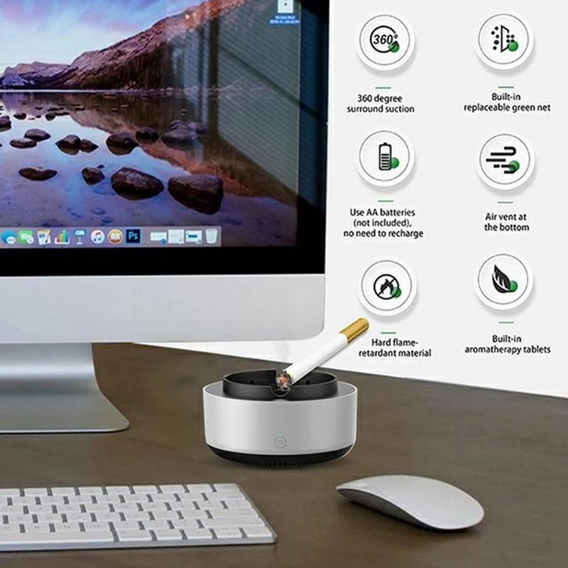 - Rökborttagande askkopp med inbyggd luftreningsfunktion