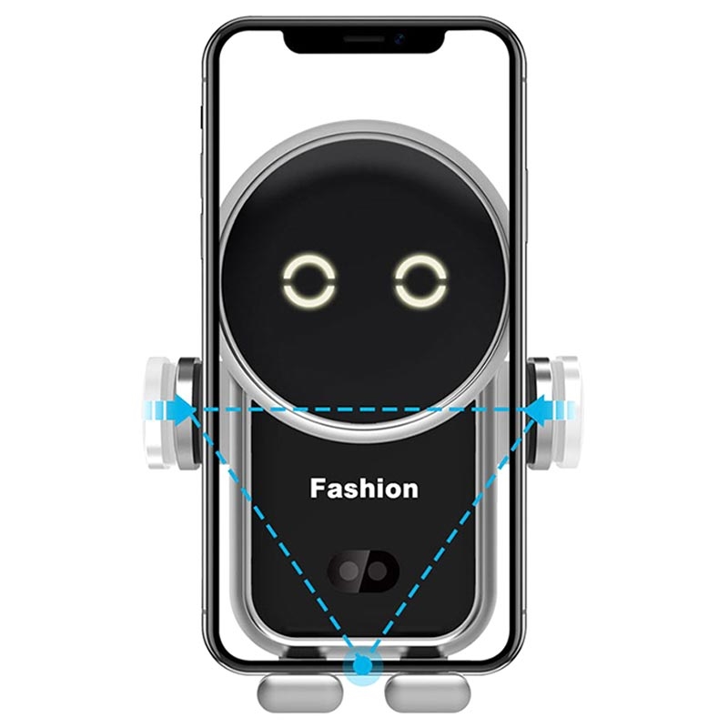 - Smart Automatic Sensor: Automatisk öppnings- och klämdesign som kan manövreras med en hand och gör allt enklare och säkrare. Placera din telefon nära det infraröda autoavkänningsområdet på fästet, armen öppnas automatiskt till sitt bredaste och pausar i 2 sekunder, sedan automatiskt kläms. Ett tryck på knappen på baksidan släpper telefonen.