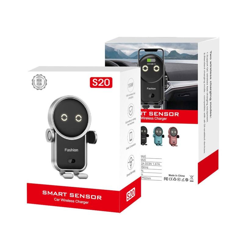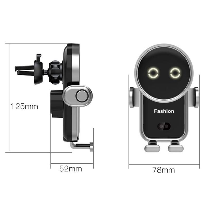 S20 Söt Astronaut Design Trådlös Billaddare 15W Snabbladdning Biltelefonhållare Smart IR-sensor Auto-Clamping Telefonfäste för billuftventil