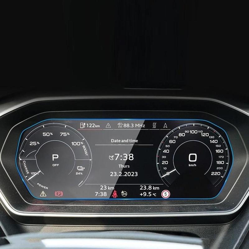 Instrumentpanelens skärm är en av de mest använda ytorna i bilen, så det är klokt att skydda den tidigt. Denna film av härdat glas lägger till ett starkt skyddande lager utan att förändra skärmens ursprungliga känsla. Den hjälper till att hålla skärmen renare, klarare och bättre skyddad från vardagliga märken, vilket gör den till en smart uppgradering för alla Audi Q4 e-tron-ägare.