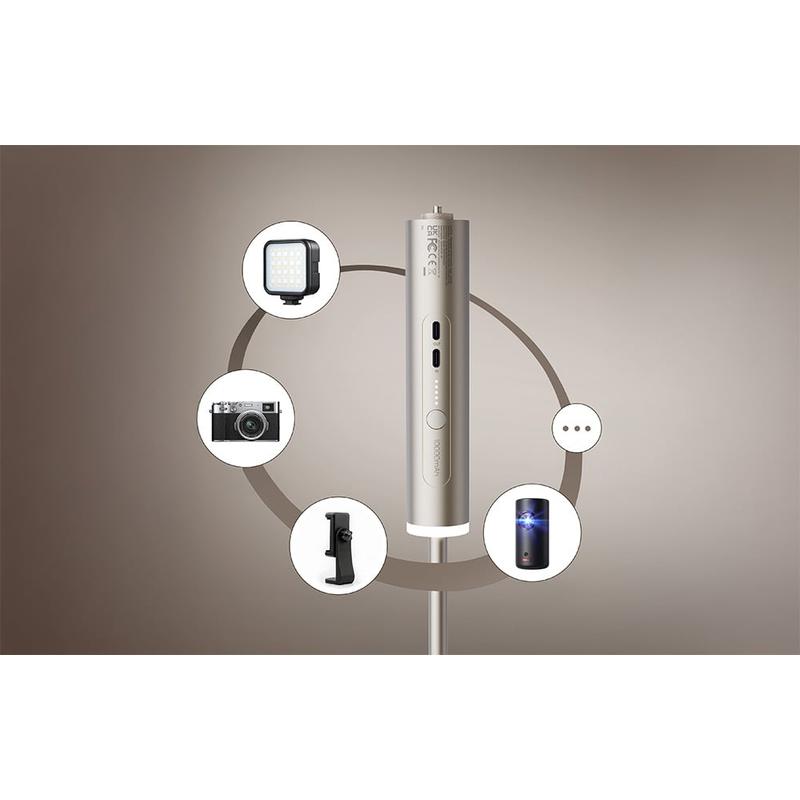 PowerPlay kombinerar två viktiga funktioner i ett: ett stabilt justerbart stativ och en extra strömkälla. Istället för att bära med dig ett stativ och en separat powerbank får du en renare uppsättning som är lättare att packa och snabbare att använda. Den magnetiska fästet påskyndar monteringen, den halkfria basen förbättrar stabiliteten och PD-snabbladdningsstödet hjälper dig att ladda snabbt när det behövs. Det är en praktisk uppgradering för alla som använder en bärbar projektor regelbundet, särskilt utomhus eller på resor.