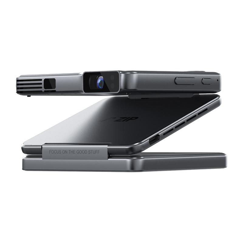 Aurzen ZIP Tri-Fold bärbar miniprojektor - DLP 720p, 100 ANSI-lumen, 5000 mAh-batteri, vertikal helskärm, omedelbar spegling