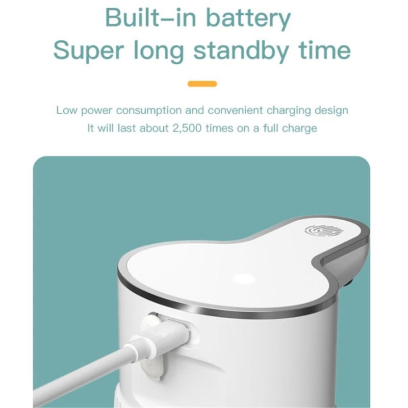 Med ett uppladdningsbart batteri på 500 mAh kan dispensern användas i flera månader på en enda laddning. Laddas enkelt via den medföljande USB-kabeln.