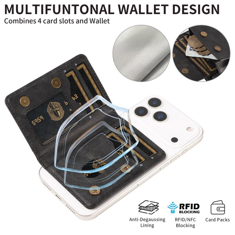 Avtagbar MagSafe-korthållare / RFID-blockerande plånbok med 4 kortplatser och stativfunktion