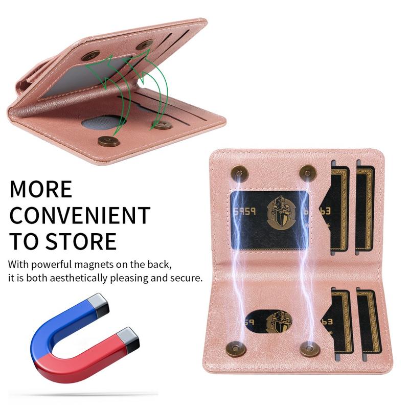 Den här plånboken erbjuder funktionalitet, säkerhet och stil i en kompakt accessoar. Med starkt magnetfäste, RFID-skydd och ett inbyggt stativ förenklar den den dagliga bärningen samtidigt som den förbättrar telefonens användbarhet.
