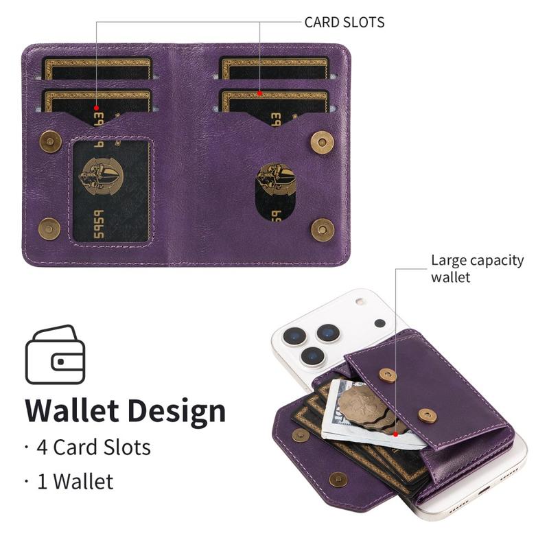 Den här plånboken erbjuder funktionalitet, säkerhet och stil i en kompakt accessoar. Med starkt magnetfäste, RFID-skydd och ett inbyggt stativ förenklar den den dagliga bärningen samtidigt som den förbättrar telefonens användbarhet.