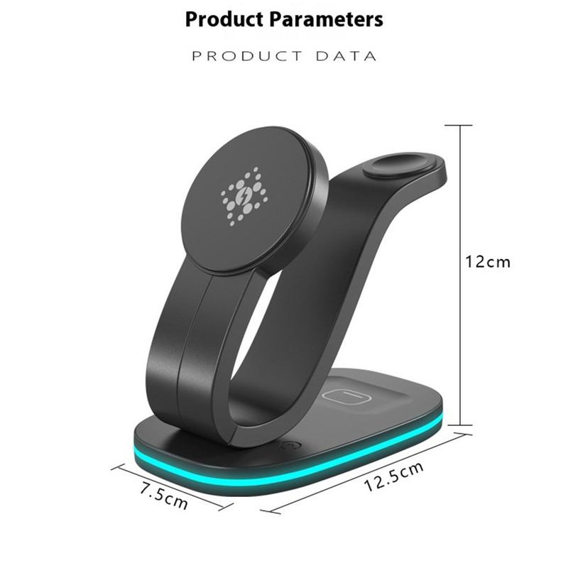 - Dedikerad 2 W klockdocka och 3 W öronsnäcksplatta gör att du kan strömförsörja tre enheter samtidigt.