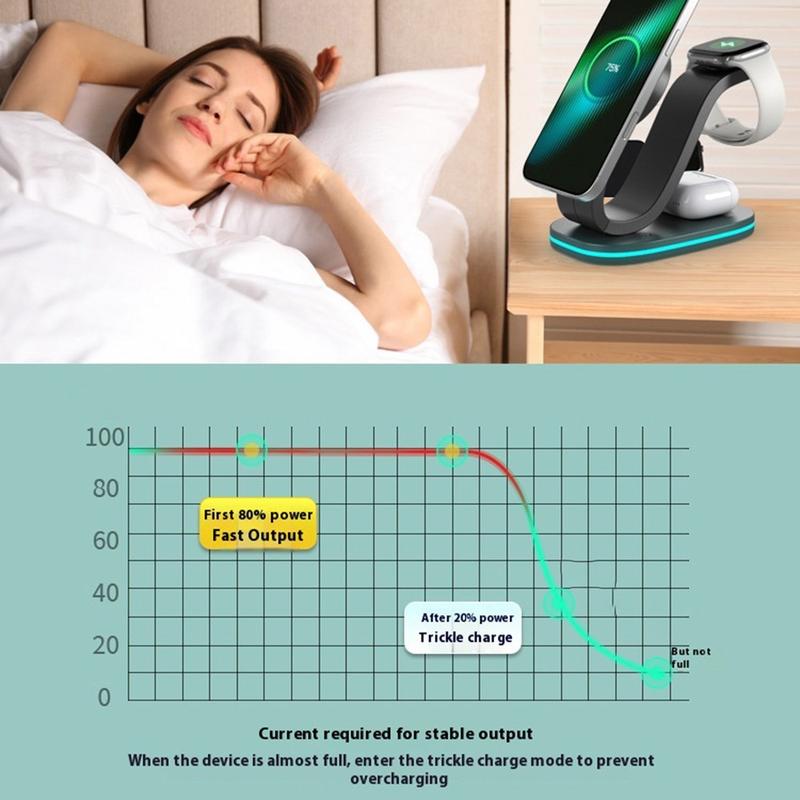 B-28 3-i-1 trådlös laddare med nattlampa - strömförsörjning av telefon, klocka och öronsnäckor på ett och samma ställe
